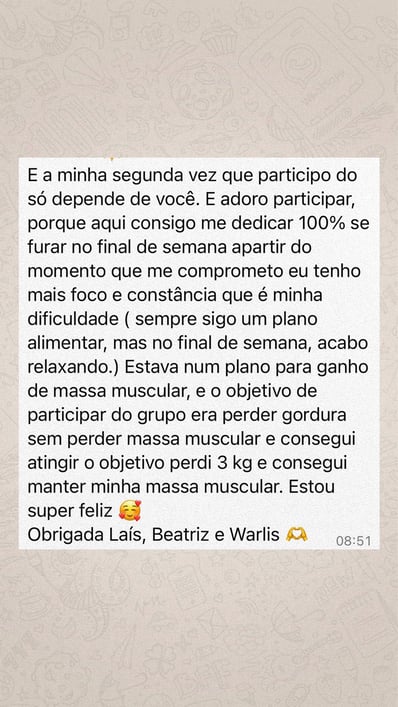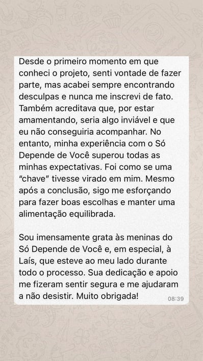 No Projeto Só Depende de Você, nossa equipe está dedicada a ajudar você a ganhar conhecimento e autonomia para transformar seu corpo e sua saúde, através de uma mudança na sua alimentação e na sua mentalidade.