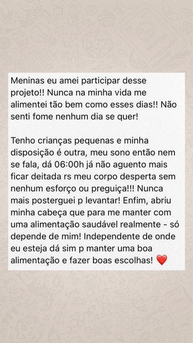 Em nosso programa, você encontrará um método que te irá te ajudar a desinflamar seu corpo, recuperar sua autoestima e fazer as pazes com a sua alimentação.